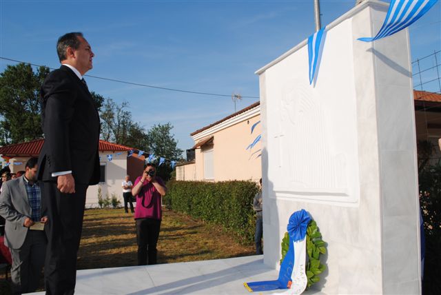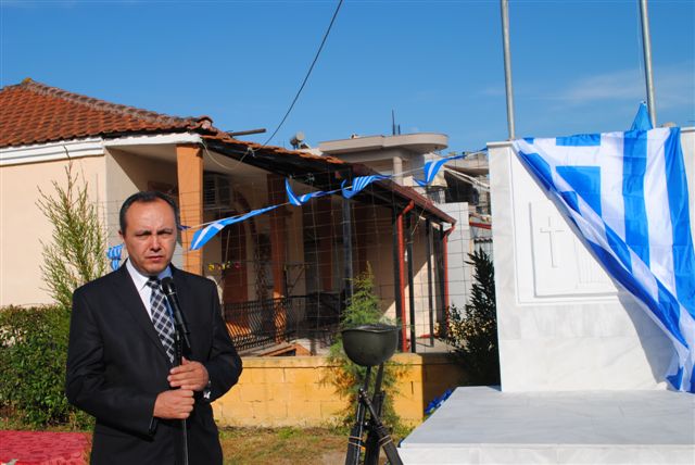 Στο σύντομο χαιρετισμό του ο Θ. Καράογλου επισήμανε ότι «με τα αποκαλυπτήρια του ηρώου τιμούμε όλους εκείνους που θυσιάστηκαν υπερασπιζόμενοι με τη ζωή τους τα κυριαρχικά μας δικαιώματα και την εθνική μας αξιοπρέπεια».