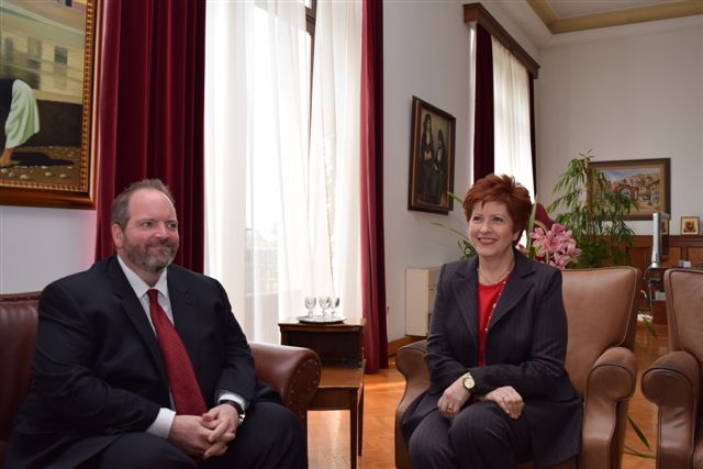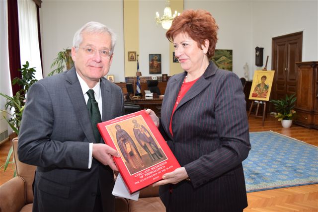 Η Υφυπουργός Εσωτερικών και Διοικητικής Ανασυγκρότησης (Μακεδονίας-Θράκης) Μαρία Κόλλια Τσαρουχά, δέχτηκε στις 16 Μαρτίου, στο Διοικητήριο, τον Πρέσβη της Ελλάδας στα Σκόπια, κ. Θεοχάρη Λαλάκο, από τον οποίο ενημερώθηκε για τα θέματα της Πρεσβείας.