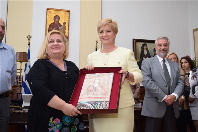 Η Υφυπουργός, κα. Μαρία Κόλλια-Τσαρουχά, τίμησε και την αρχαιολόγο, επικεφαλής των ανασκαφών στον λόφο Καστά, κα Αικατερίνη Περιστέρη, η οποία παραβρέθηκε στο Διοικητήριο: