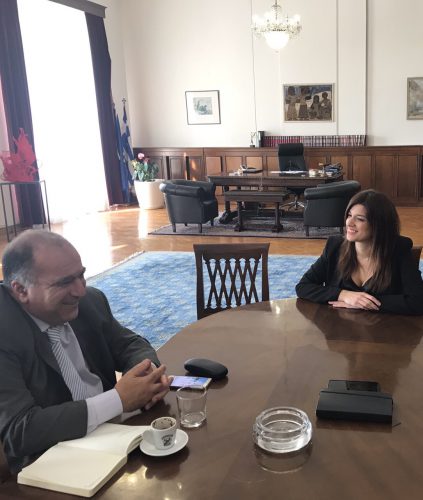 Συνάντηση με το νέο πρόεδρο της Αλεξάνδρειας Ζώνης Καινοτομίας Κυριάκο Λουφάκη είχε σήμερα το μεσημέρι, Τετάρτη 24 Οκτωβρίου 2018, η Υφυπουργός Εσωτερικών (τομέας Μακεδονίας και Θράκης) Κατερίνα Νοτοπούλου.