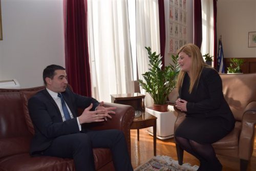Εθιμοτυπική επίσκεψη στην Υφυπουργό Εσωτερικών Τομέα Μακεδονίας και Θράκης, Ελευθερία Χατζηγεωργίου, πραγματοποίησε σήμερα, Παρασκευή 1 Μαρτίου 2019 στις 2μμ, ο Γενικός Πρόξενος της Κυπριακής Δημοκρατίας στη Θεσσαλονίκη, Σπύρος Μιλτιάδης.