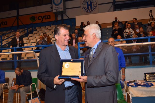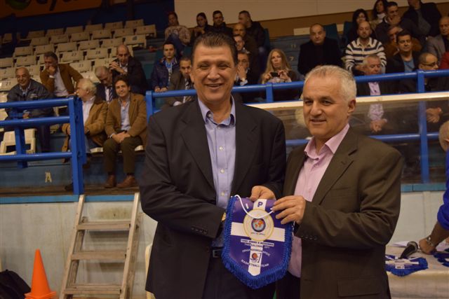 Μετά το τέλος της αναμέτρησης, ο κ. Ορφανός βράβευσε τον γενικό γραμματέα του ΣΕΠΚ, Παρασκευά Μουρατίδη για την προσφορά του στο μπάσκετ.