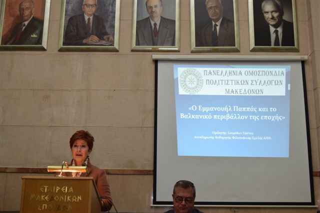 Στις 12.30 μ.μ. η Υφυπουργός Εσωτερικών και Διοικητικής Ανασυγκρότησης (Μακεδονίας-Θράκης), Μαρίας Κόλλια-Τσαρουχά, έδωσε το παρόν σε διάλεξη του Αναπληρωτή Καθηγητή Φιλοσοφικής Σχολής ΑΠΘ, κ. Σπυρίδωνα Σφέτα, με θέμα: «Ο Εμμανουήλ Παππάς και το Βαλκανικό περιβάλλον της εποχής».