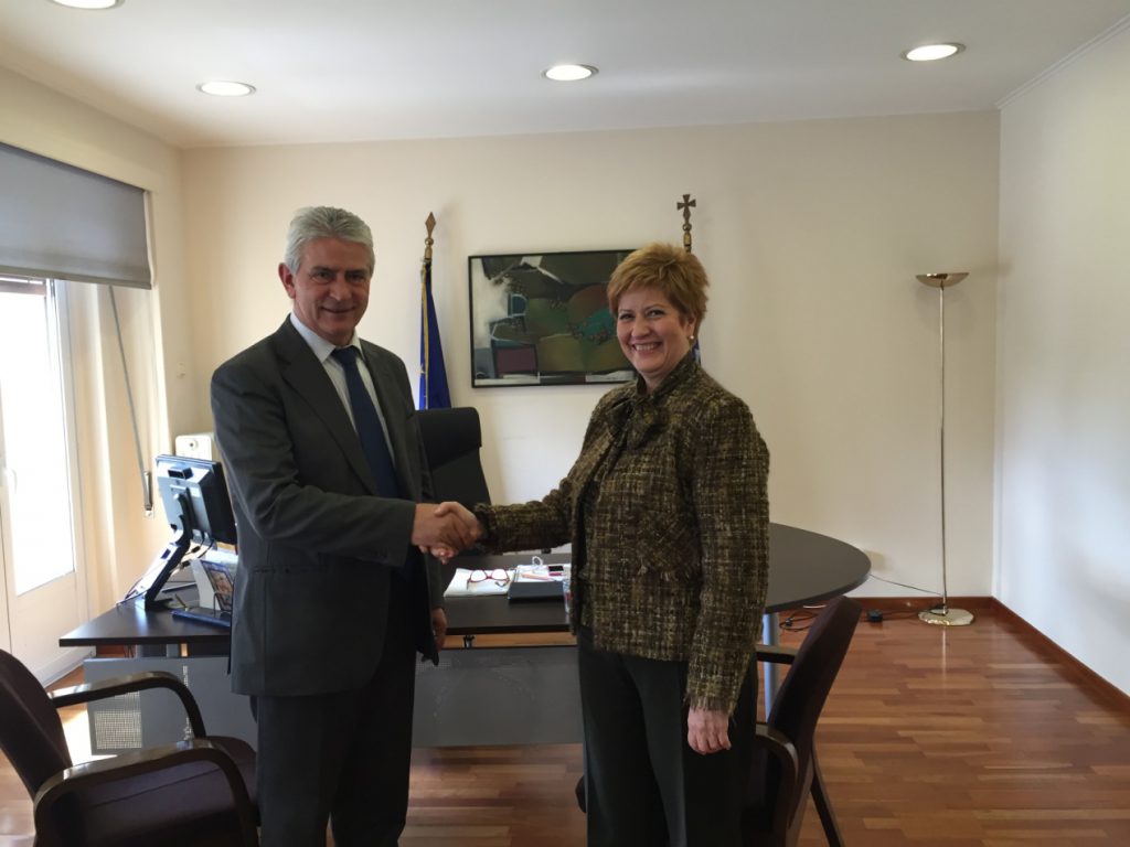 Η Υφυπουργός Εσωτερικών και Διοικητικής Ανασυγκρότησης (Μακεδονίας-Θράκης), Μαρία Κόλλια-Τσαρουχά, συναντήθηκε σήμερα, 31 Μαρτίου 2015, στην Αθήνα, με τον βουλευτή Έβρου και τομεάρχη της Νέας Δημοκρατίας για θέματα Μακεδονίας και Θράκης, Αναστάσιο Δημοσχάκη.
