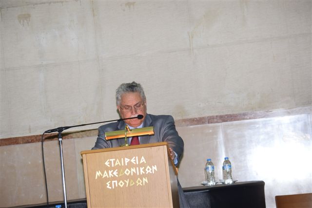 Αξιότιμε και δραστήριε Γενικέ Γραμματέα της Εταιρείας Μακεδονικών Σπουδών, κύριε Βασίλη Πάππα, σας ευχαριστώ για τη συμβολή σας στην παρουσία μου στην αποψινή σημαντική εκδήλωση και χαίρομαι ιδιαίτερα