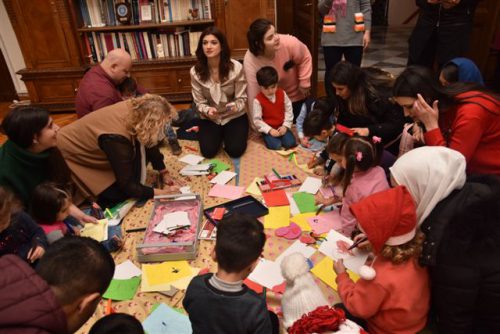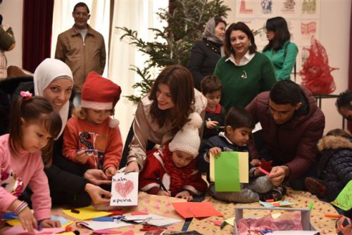 Στο γραφείο της Υφυπουργού, παιδάκια προσχολικής ηλικίας , στην πλειοψηφία τους προσφυγόπουλα από το παιδικό κέντρο «Διά-δρασις» έφτιαξαν τα δικά τους στολίδια για το Χριστουγεννιάτικο δέντρο του ΥΜΑΘ.