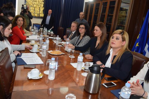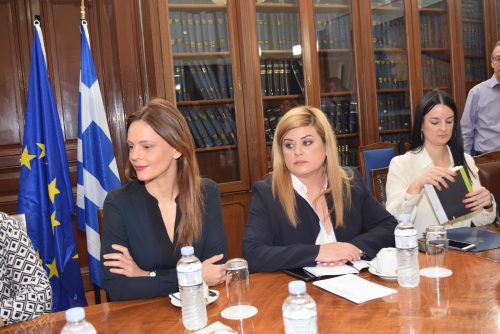 Σύσκεψη της Υφυπουργού Εσωτερικών (Μακεδονίας – Θράκης), Ελευθερίας Χατζηγεωργίου, της Υπουργού Εργασίας, Κοινωνικής Ασφάλισης και Κοινωνικής Αλληλεγγύης, Έφης Αχτσιόγλου, και διευθυντικών στελεχών του Σώματος Επιθεώρησης Εργασίας (ΣΕΠΕ), του ΟΑΕΔ και του Ενιαίου Ταμείου Επικουρικής Ασφάλισης και Εφάπαξ Παροχών (ΕΤΕΑΠ) με θέμα την αξιοποίηση ακινήτων του Υπουργείου Εργασίας, πραγματοποιήθηκε σήμερα, 11 Απριλίου 2019, στο Υπουργείο Μακεδονίας – Θράκης.