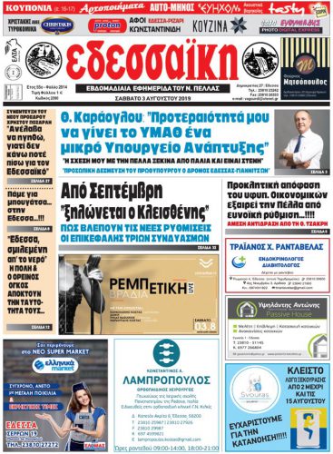 Συνέντευξη κ. Θ. Καράογλου στην εφημερίδα «ΕΔΕΣΣΑΪΚΗ» Ν. Πέλλας και τη δημοσιογράφο Μαρία Βαγουρδή