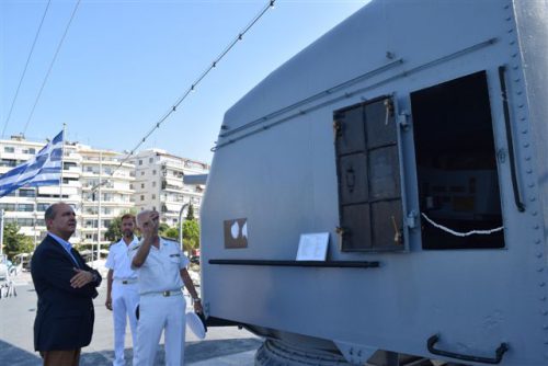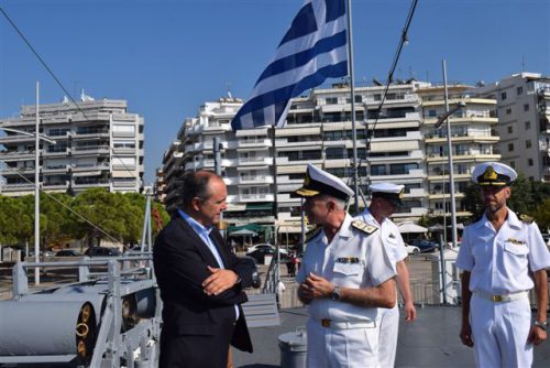 Επίσκεψη του Υφυπουργού Εσωτερικών (Μακεδονίας και Θράκης) κ. Θ. Καράογλου στο Α/Τ ΒΕΛΟΣ (D-16) που έχει «δέσει» στη Θεσσαλονίκη (14-10-2019)