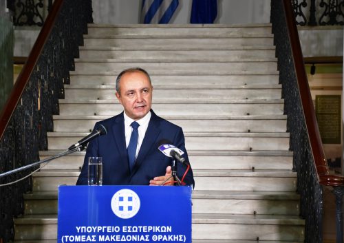 Προσφωνώντας την Ανώτατη Πολιτειακή Άρχοντα ο Υφυπουργός Εσωτερικών (Μακεδονίας και Θράκης) τόνισε στον σύντομο χαιρετισμό του ότι “το ιστορικό κτήριο του Διοικητηρίου τεκμηριώνει την άποψη ότι το παρελθόν είναι ένα ύφασμα που δεν μπορεί να ξηλωθεί, διότι στο εσωτερικό του αντηχεί η ιστορία και αποτυπώνεται η εξέλιξη της Θεσσαλονίκης”.