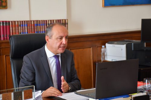 Τηλεδιάσκεψη με τους αυτοδιοικητικούς και παραγωγικούς φορείς της Πέλλας πραγματοποίησε σήμερα ο κ. Θεόδωρος Καράογλου, στο πλαίσιο πρωτοβουλίας που αναλαμβάνει για σειρά διαδικτυακών ενημερωτικών συζητήσεων με τις Αρχές Περιφερειακών Ενοτήτων της Βόρειας Ελλάδας, μέσα από τις οποίες θα γίνει αποτίμηση των συνεπειών της πανδημίας. Ο Υφυπουργός Εσωτερικών (Μακεδονίας και Θράκης) ενημερώθηκε για τα κρούσματα που καταγράφονται στην περιοχή και τις επιπτώσεις του κορωνοϊού στην τοπική οικονομία, ενώ του τέθηκε υπόψη το αίτημα για εντατικοποίηση των ελέγχων.