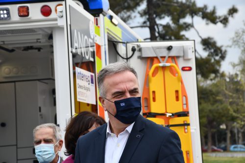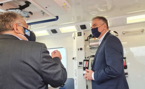 Στην τελετή Παρουσίασης της πρότυπης Νέας Κινητής Μονάδας Εντατικής Θεραπείας Νεογνών και Παιδιών που εντάσσεται στο Ε.Κ.Α.Β. – Εθνικό Κέντρο Άμεσης Βοήθειας και αποκτήθηκε μέσω του έργου «ΙΝTERSYC II», που πραγματοποιήθηκε στη Νέα Παραλία της Θεσσαλονίκης, παρέστη ο Υφυπουργός Εσωτερικών αρμόδιος για θέματα Μακεδονίας και Θράκης, κ. Σταύρος Καλαφάτης.