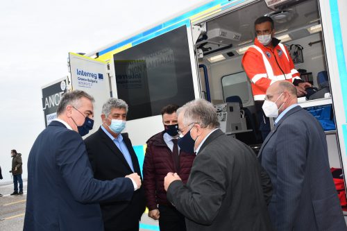 Στην τελετή Παρουσίασης της πρότυπης Νέας Κινητής Μονάδας Εντατικής Θεραπείας Νεογνών και Παιδιών που εντάσσεται στο Ε.Κ.Α.Β. – Εθνικό Κέντρο Άμεσης Βοήθειας και αποκτήθηκε μέσω του έργου «ΙΝTERSYC II», που πραγματοποιήθηκε στη Νέα Παραλία της Θεσσαλονίκης, παρέστη ο Υφυπουργός Εσωτερικών αρμόδιος για θέματα Μακεδονίας και Θράκης, κ. Σταύρος Καλαφάτης.