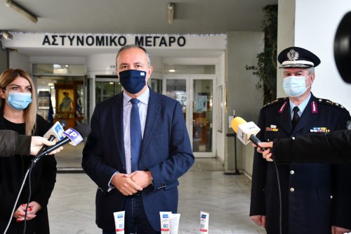 Χιλιάδες σωληνάρια με αντισηπτικό υγρό παρέδωσε σήμερα στη Γενική Αστυνομική Διεύθυνση Θεσσαλονίκης ο Υφυπουργός Εσωτερικών (Μακεδονίας και Θράκης), κ. Θεόδωρος Καράογλου, σε αναγνώριση της συμβολής των Αστυνομικών στην τεράστια προσπάθεια που καταβάλλεται καθημερινά για την τήρηση των μέτρων περιορισμού της διασποράς της πανδημίας και την προάσπιση της δημόσιας υγείας.